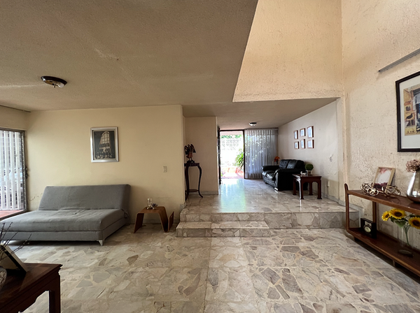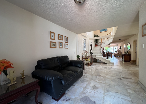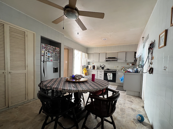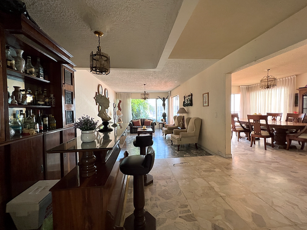 Cochera para 4 autos techada, Ingreso con jardín, Enorme area de recibidor con un medio baño, cantina amplia e iluminada sala. Cocina integral con area desayunado, despensa y salida a un patio a la cochera.