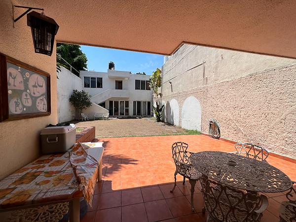 Area de comedor con acceso a la terraza techada, jardín intermedio con jardinera, y terraza con cocinera y barra en planta baja, en la parte superior cuenta con 2 recámaras y un baño completo.